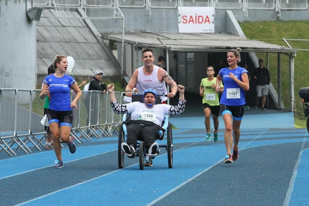 O soldado BM Renato Augusto Mertins, da 2ª Companhia do Batalhão de Operações Aéreas de Blumenau disputou uma corrida diferenciada neste domingo, 1/07 no centro esportivo Bernardo Wener (SESI - Blumenau). Por meio do programa Pernas Solidárias, Mertins foi voluntário para correr os 5 quilômetros com o cadeirante Jeferson Cardoso Neres.